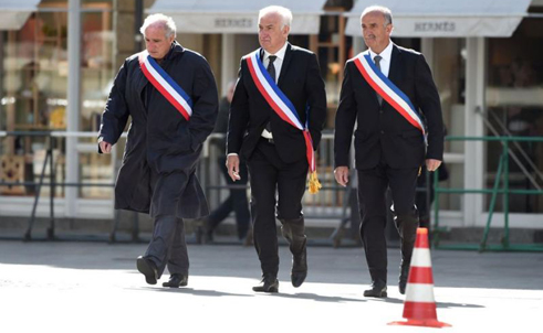 Ba vị trưởng làng xung quanh nơi xảy ra tai nạn, tại vùng núi Alpes (Pháp) đến tham dự buổi lễ. Ảnh tạp chí Der Spiegel (Đức)