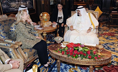 Ông Abdullah trong một cuộc gặp gỡ với Ngoại trưởng Mỹ Hillary Cliton tại cung điện của mình.