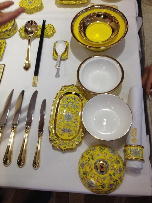 Tại Diễn đàn Hợp tác Kinh tế châu Á - Thái Bình Dương (APEC) năm 2014 diễn ra ở Bắc Kinh, Trung Quốc, các nhà lãnh đạo chắc hẳn khó mà quên được buổi quốc yến ấn tượng của nước chủ nhà. Để chuẩn bị cho buổi quốc yến được tổ chức tại cung thể thao quốc gia Thủy Lập Phương, Trung Quốc đã chiêu mộ 200 đầu bếp giỏi cùng đội ngũ phục vụ chuyên nghiệp và các nghệ nhân thiết kế gốm của làng gốm sứ Đức Cảnh Trần nổi tiếng.