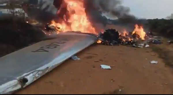 Máy bay bốc cháy tại hiện trường ngày 9/3. Ảnh: Camioneros de Colombia.