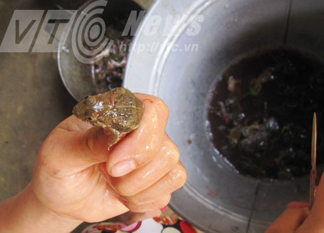Cô Ngân Thị Vui nhanh nhẹn xách chậu đựng thức ăn tươi ra, chuẩn bị đãi khách. Lưng lửng chậu toàn nhái đồng nhái suối, bé bằng đầu ngón tay, ngón chân đang chen chúc cố ngoi lên mặt nước xâm xấp. Cô cười hồn hậu: “Chắc các anh ít ăn món này, nhưng ngon đáo để đấy”.