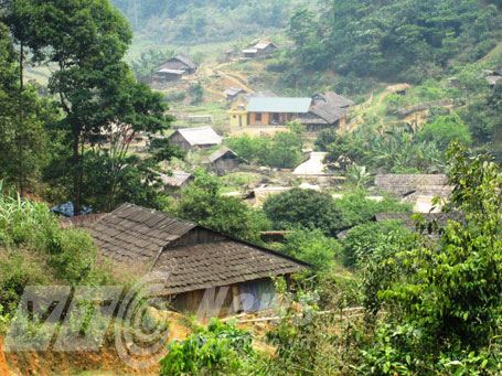 Thật may, đúng lúc đó thì ngôi nhà gạch màu vàng hiện ra, dấu hiệu của trường học vùng cao đang được đầu tư kiên cố hóa. Đó hình như là ngôi nhà duy nhất trên bản này dùng tấm lợp phibro xi măng. Bốn bề trong thung, trên sườn đồi chỉ lúp xúp toàn những mái nhà gỗ và tranh tre nứa lá.