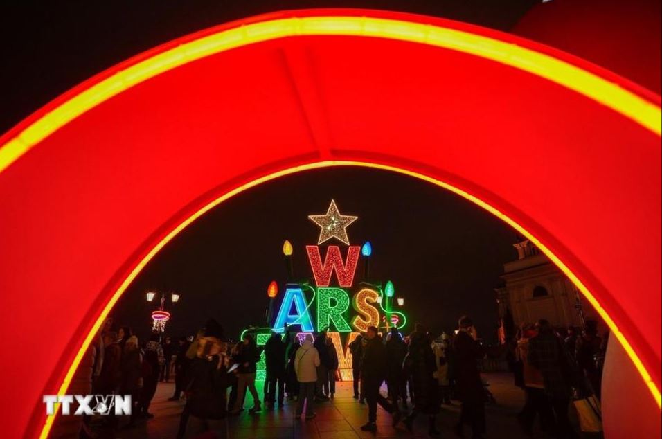 Đường phố được trang hoàng đón Giáng sinh tại Warsaw, Ba Lan. (Ảnh: THX/TTXVN)