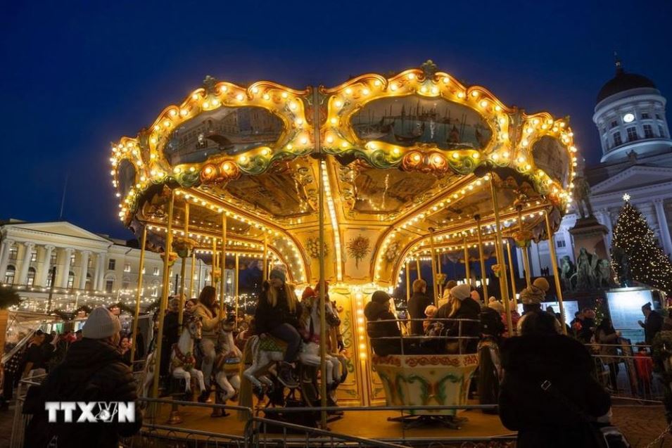Người dân thăm chợ Giáng sinh tại Helsinki, Phần Lan. (Ảnh: THX/TTXVN)