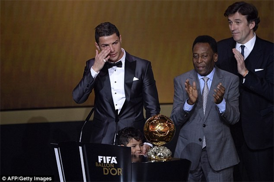 Ronaldo bật khóc trong lễ trao giải Quả bóng vàng FIFA 2013. Ảnh: AFP/Getty Images.