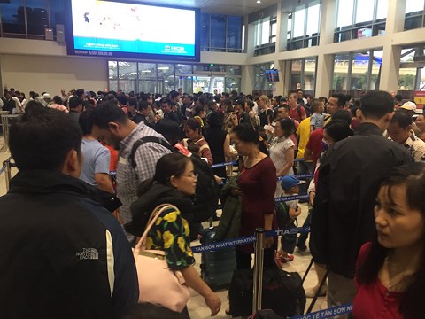 Rồng rắn xếp hàng chờ đi máy bay tối mùng 1 Tết Mậu Tuất