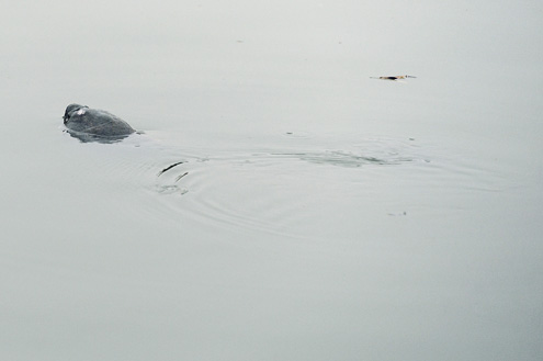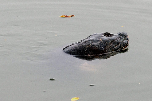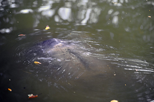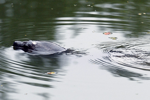 Sau đó rùa bơi đi bơi lại khu vực này ít phút, phần lưng lập lờ mặt nước.