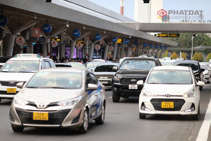 Chiều 21/1, đường dẫn vào ga quốc nội sân bay Tân Sơn Nhất (TP.HCM) luôn chật kín xe đưa, đón hành khách.