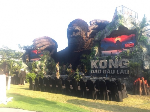 Theo chia sẻ từ đơn vị phát hành phim ở Việt Nam, để có được sân khấu hoành tráng và hình ảnh King Kong tại TP.HCM, ekip đã phải mời nghệ nhân từng làm đường hoa Nguyễn Huệ tới và thực hiện trong 12 ngày. Ý tưởng sân khấu tái hiện nhiều không gian và cảnh quay tại Quãng Bình. Đây được xem là một trong những không gian ra mắt phim được đầu tư hoành tráng nhất Việt Nam từ trước đến nay.