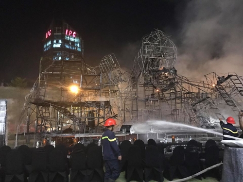 Sân khấu hoành tráng bất ngờ bốc cháy dữ dội. (Ảnh: Phạm Thành Trung).