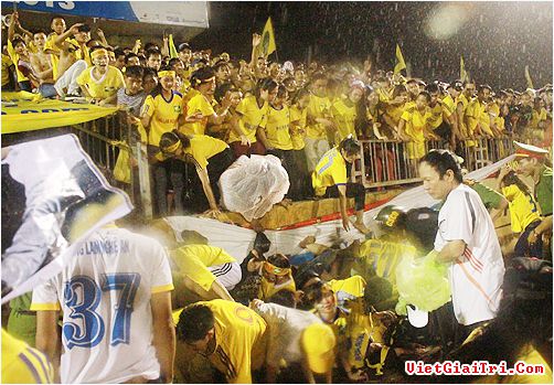 Nhìn Công Vinh rơi nước mắt, CĐV xứ Nghệ đã vươn về phía trước động viên, khiến hàng rào vốn không còn chắc chắn của SVĐ Vinh sụp đổ.