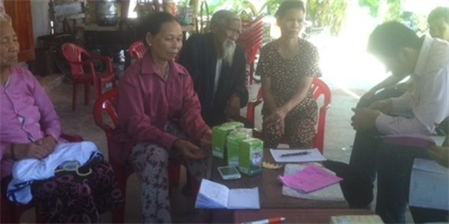 Cùng với bà Thanh, nhiều người dân xã Phong Sơn như bà Trần Thị Em, 75 tuổi, đau thoái hóa cột sống, dạ dày, tai biến...sau khi được thăm khám, đo huyết áp, bà cũng được bán một loại thực phẩm chức năng Chablood.