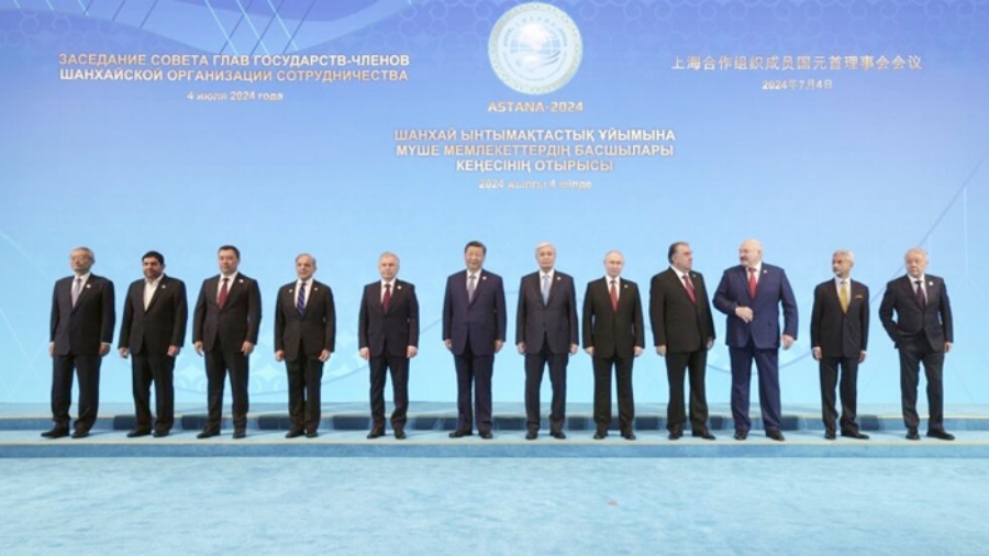 Các quan chức tại hội nghị thượng đỉnh của Tổ chức Hợp tác Thượng Hải (SCO) ở Astana, Kazakhstan, ngày 4/7.