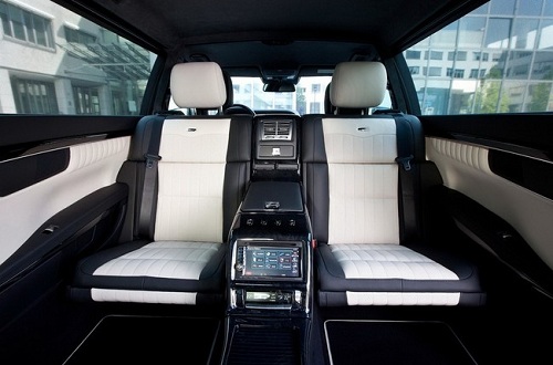 Bên trong chiếc xe được hoàn thiện bằng những vật liệu cao cấp nhất, với các tùy chọn chất liệu gỗ cao cấp, da, các tùy chọn tông màu sơn, tông màu chất liệu da. Ngoài ra còn có bàn làm việc, hệ thống giải trí với các màn hình LCD cỡ lớn.