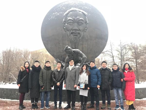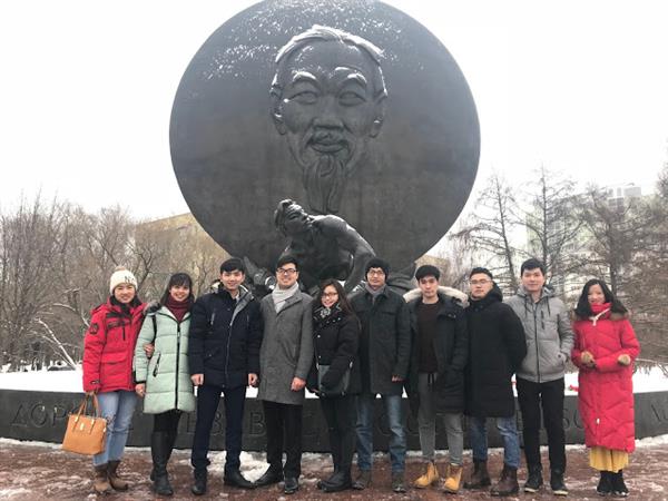 Tại Quảng trường Hồ Chí Minh, trong không khí trang nghiêm, các LHS đã kính cẩn dâng hoa trước tượng đài của Bác, chú tâm lắng nghe những câu chuyện lịch sử liên quan đến hoạt động của Người tại Nga. Cũng tại Quảng trường Hồ Chí Minh, các bạn sinh viên rất vinh dự được gặp gỡ và lắng nghe những lời dặn dò của đồng chí Ngô Quốc Thái – Phó Bí thư Đảng ủy  tại Liên bang Nga.