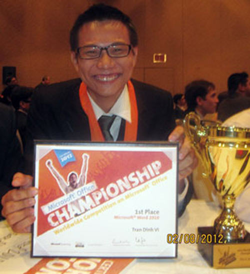 Nam sinh viên Trần Đình Vĩ của ĐH Ngân hàng TP.HCM đã giành quán quân quốc gia cuộc thi Microsoft Office World Champion 2012, nội dung thi ứng dụng Microsoft Office Word 2003.