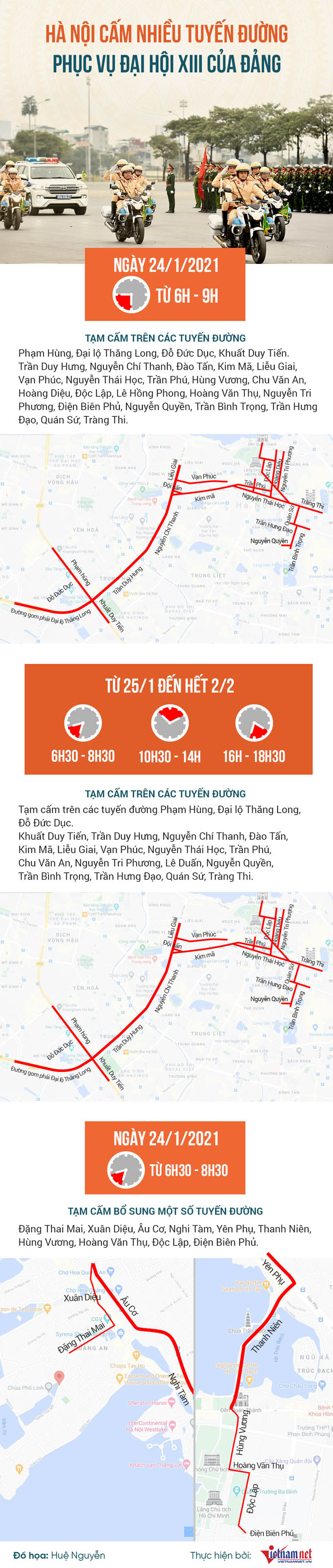 Sơ đồ cấm hơn 20 tuyến đường phục vụ Đại hội Đảng XIII