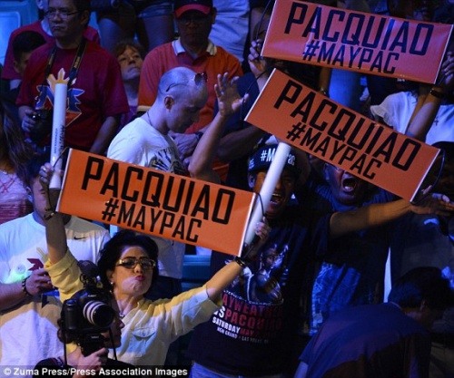 Hãng tin AFP cho biết, hàng triệu người dân Philippines đã tập trung đông đảo tại các địa điểm công cộng như rạp chiếu phim, quán bar.. để theo dõi trận đấu quyền anh “thế kỷ” giữa Pacquiao và Mayweather tại Las Vegas. Sau khi bị các trọng tài xử thua, Pacquiao rất thất vọng nói rằng anh nghĩ mình đã giành chiến thắng. Tại Philippines, người dân phẫn nộ và cho rằng các trọng tài chủ nhà đã thiên vị Mayweather.