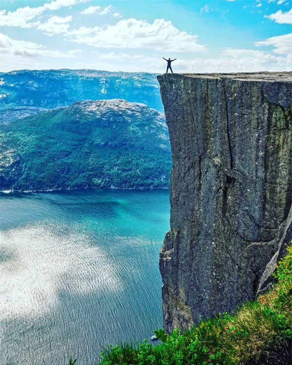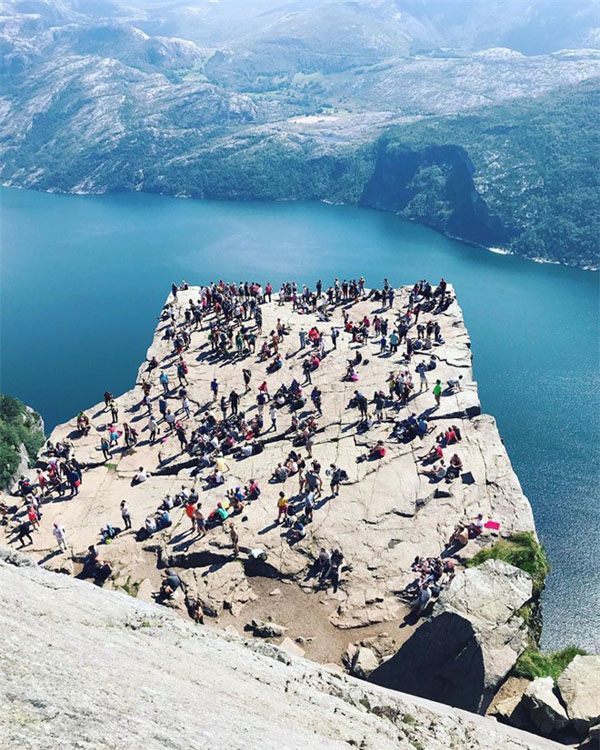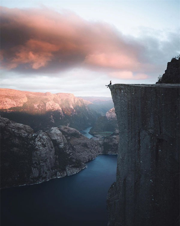 Phía trên cùng của phiến đá cung cấp tầm nhìn tuyệt đối ra dãy núi Scandes và vùng vịnh hẹp Lysefjorden của Na Uy. - (Ảnh: @kuhrmarvin)