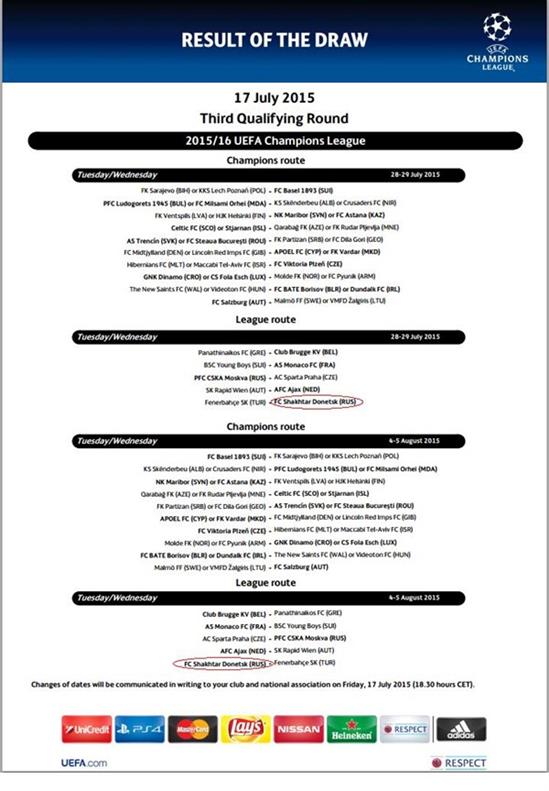 Nhưng không hiểu sao, trong bản thông báo về vòng loại thứ ba này của UEFA thì đội Shakhtar Donetsk lại được đánh dấu là (RUS) tức là viết tắt của "Russia" (Nga) chứ không phải được đánh dấu là (UKR) vốn là cách viết tắt của Ukraine.