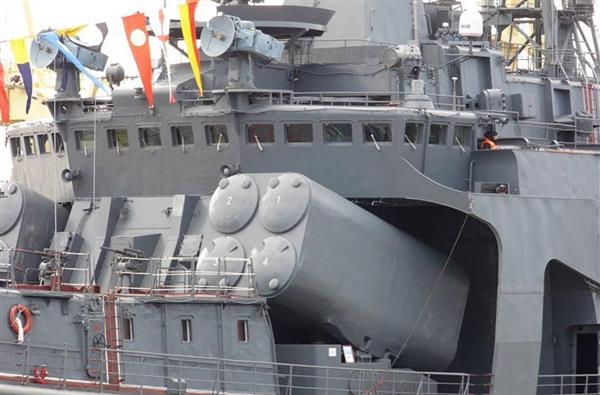 Ở tầm dưới 10km, tàu ngầm địch nào nếu mạo hiểm tiến tới gần đe dọa tàu chiến Nga sẽ phải hứng chịu “kachiusa” RBU-6000. Nguồn ảnh: VOVRBU-6000 Smerch 2 thiết kế với các giàn phóng rocket hình tròn, lắp 12 ống phóng cỡ 213mm dùng bom phản lực RGB-60 (tầm bắn 350m đến 5,8km, xuyên sâu 10m tới 500m) hoặc bom 90R (tầm bắn 600m đến 4,3km, xuyên sâu 0-1.000m).