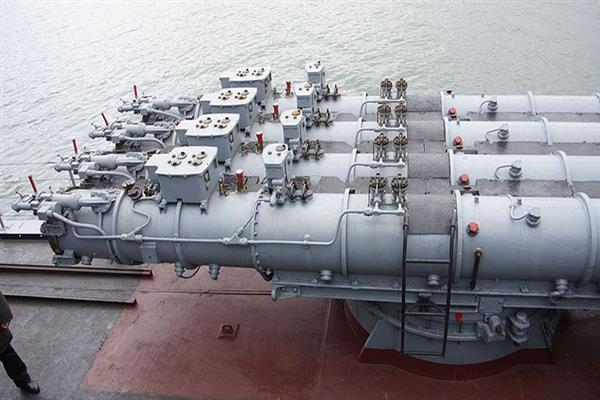 Ở tầm trung, tàu ngầm đối phương sẽ phải đối phó với 10 bệ phóng ngư lôi có thể bắn các loại ngư lôi chống ngầm/tàu mặt nước Type 53 đạt tầm 19-22km, tốc độ khoảng 80km/h. Nguồn ảnh: WikiCác bệ ngư lôi này có thể bắn tên lửa chống ngầm RPK-2 Viyuga đạt tầm phóng 35-45km với đầu đạn hạt nhạn 5kt hoặc ngư lôi Type 40 tự tìm diệt tàu ngầm. Nguồn ảnh: Wiki