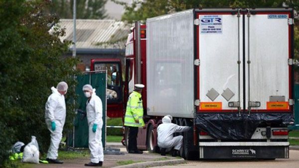 Chiếc container chở 39 thi thể đã bị chết, được cảnh sát Anh phát hiện tại khu công nghiệp Waterglade, quận Essex, phía Đông Bắc London, Vương quốc Anh (Ảnh: Internet)