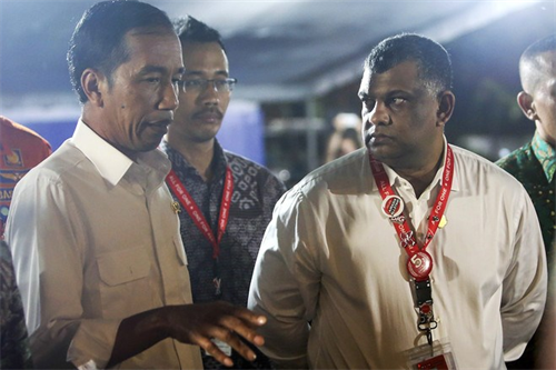 Tổng thống Indonesia Joko Widodo (trái) và CEO hãng hàng không AirAsia.