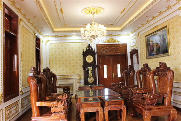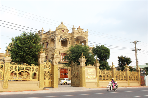 Thực tế, phần bên ngoài căn biệt thự chỉ là sơn màu vàng, chỉ có các chi tiết bên trong được ốp vàng 24k, bao gồm trần nhà, tường và một số chi tiết khác. Tuy nhiên, ông Thiện không muốn nói nhiều về việc ốp vàng bởi đơn giản ông thích vậy.