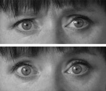Đôi mắt trong trạng thái bình thường (ảnh trên) và khi