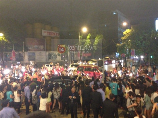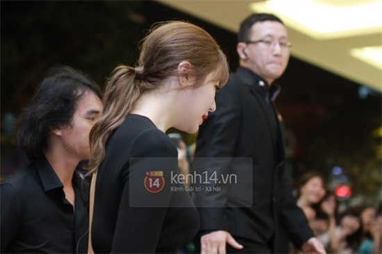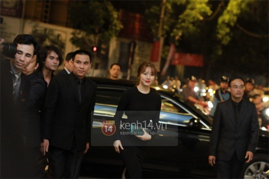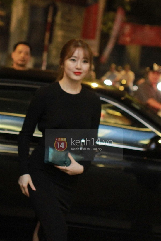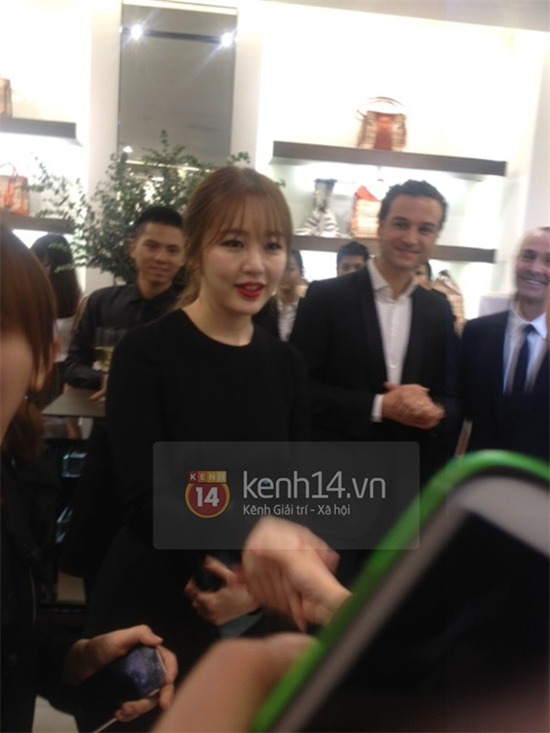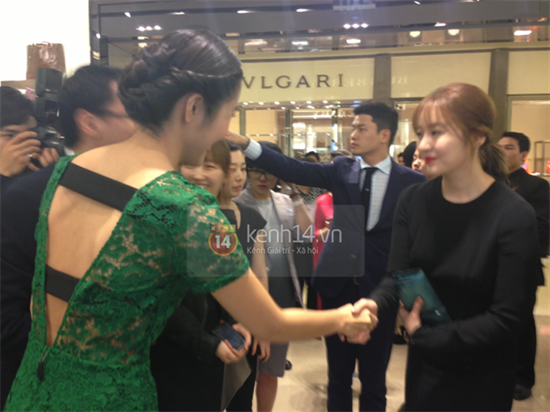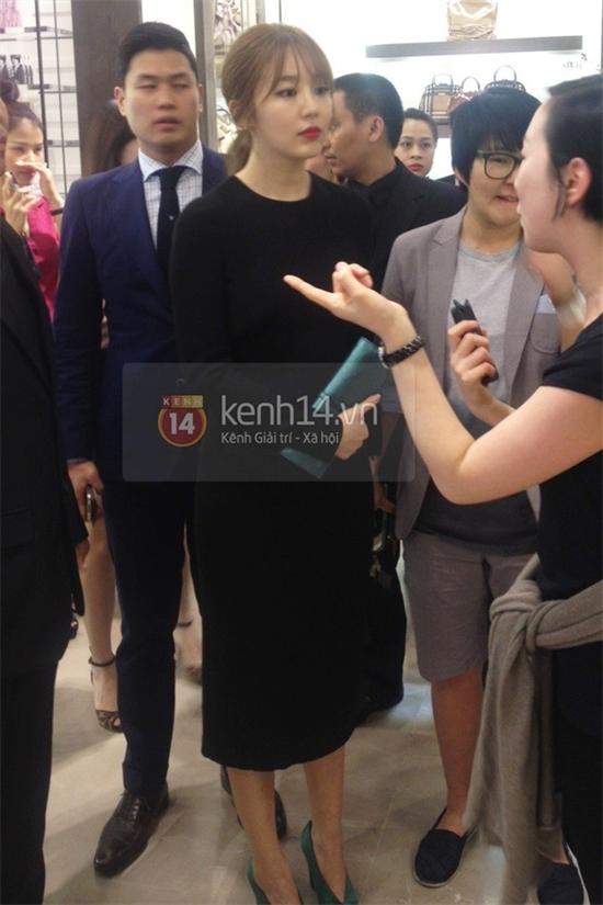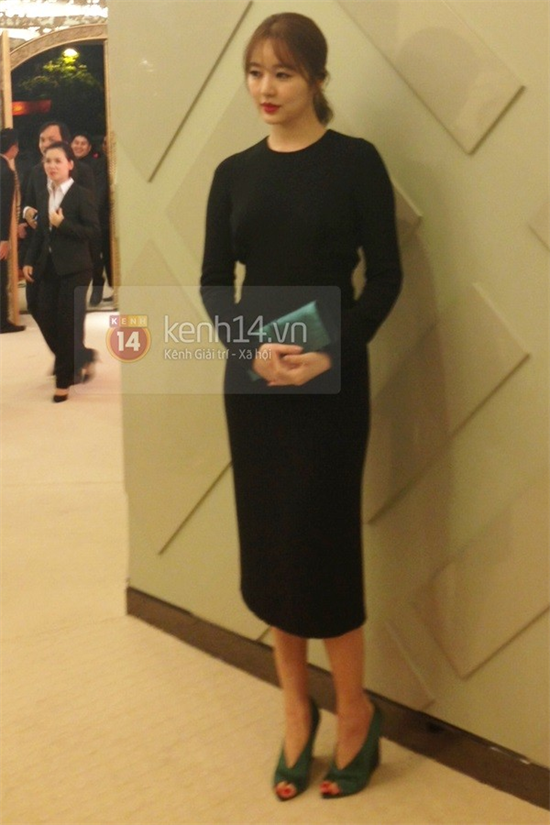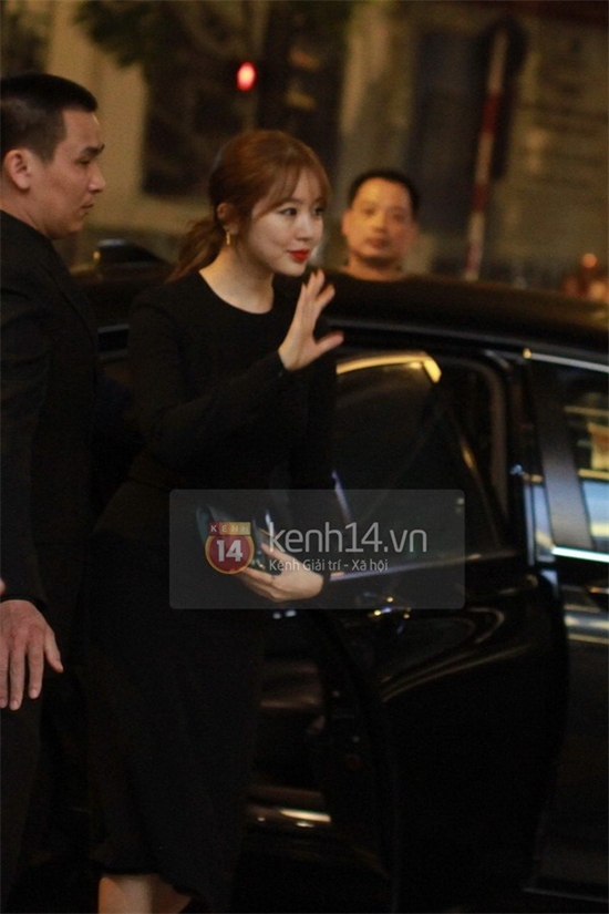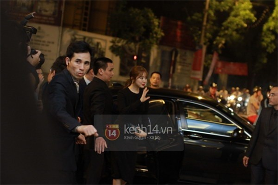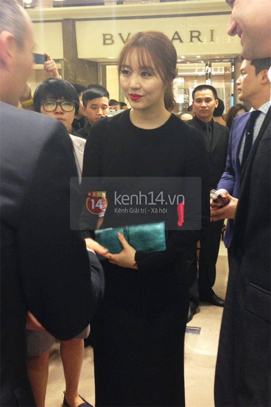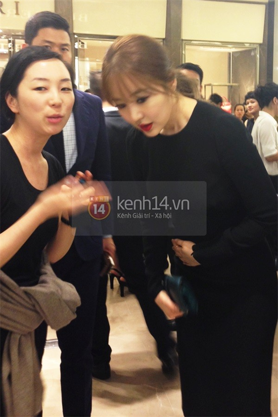Khoảng 20h, Yoon Eun Hye xuất hiện trong bộ váy đen đơn giản nhưng vẫn sang trọng. Nữ diễn viên còn thân thiện vẫy tay chào các fan đứng bên ngoài chào đón mình. Rất đông người dân tập trung trước Tràng Tiền Plaza dẫn đến tình trạng tắc đường.