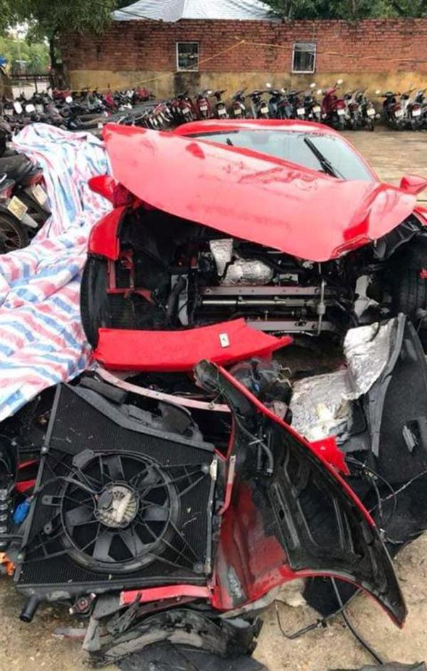 Hôm 16/10, chiếc siêu xe Ferrari 488 màu đỏ mang BKS 51F-889.88 GTB thuộc sở hữu của ca sĩ Tuấn Hưng đã gặp nạn trên cao tốc Nội Bài - Lào Cai.