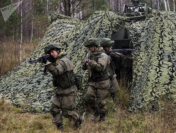 Binh lính của sư đoàn phòng không Novosibirsk tập luyện bảo vệ các xe chở tên lửa.