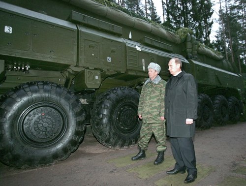 Hệ thống đẩy của Topol do Trung tâm Soyuz phát triển với công nghệ đặc biệt cho phép nó bay cao hơn so với các hệ thống tên lửa đạn đạo khác và có thể đạt vận tốc tối đa 26.400 km/h. Ảnh: Tổng thống Nga Putin thị sát tổ hợp tên lửa đạn đạo Topol.