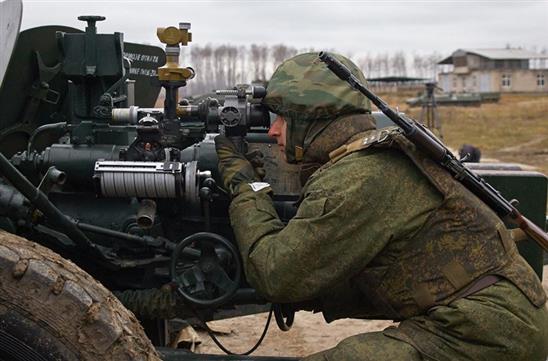Ảnh binh sĩ Nga huấn luyện sử dụng pháo kéo.
