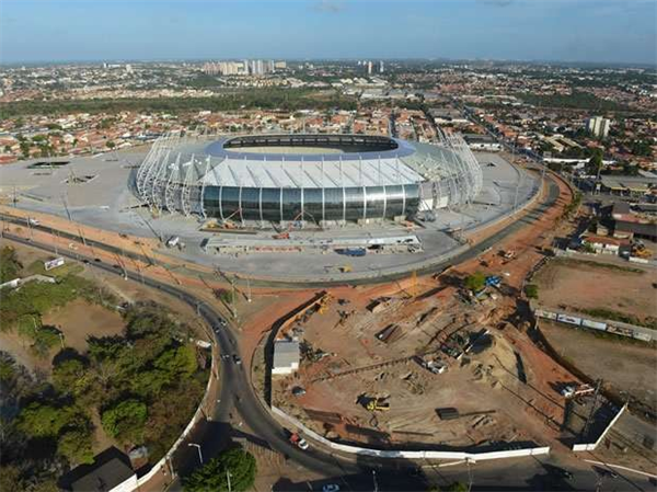 Castelao Arena, Fortaleza: Với sức chứa 64.000 chỗ ngồi, Castelao được sử dụng cho một trận đấu thuộc vòng tứ kết, trận đấu loại trực tiếp giữa đội nhất bảng B, nhì bảng A, các trận đấu thuộc vòng bảng giữa Uruguay - Costa Rica, Brazil - Mexico, Đức - Ghana, Hy Lạp - Bờ Biển Ngà. Công trình sân vận động đang được hoàn thiện hệ thống đường bộ xung quanh.
