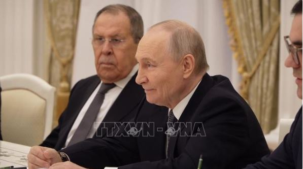 Trong khuôn khổ chuyến thăm Liên bang Nga để thông báo về kết quả Đại hội đại biểu toàn quốc lần thứ XIV của Đảng Cộng sản Việt Nam, chiều 24/2, tại Điện Kremlin, Đặc phái viên của Tổng Bí thư Tô Lâm, Ủy viên Bộ Chính trị, Bộ trưởng Ngoại giao Lê Hoài Trung đã có cuộc hội kiến Tổng thống Vladimir Putin.