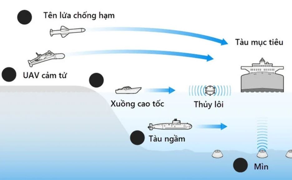 Với địa hình "thắt nút cổ chai" ở Hormuz, khiến Iran có thể tận dụng và biến nó thành nơi “đi dễ, khó về” với cả tàu chiến vào tàu vận tải.