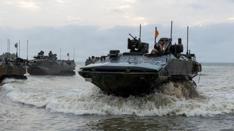 Tàu tấn công đổ bộ USS Tripoli của Hải quân Mỹ chở khoảng 2.200 lính thủy đánh bộ đang di chuyển gần eo biển Malacca hướng tới Trung Đông, CNN và ABC News đưa tin sáng 18/3. Ảnh minh họa về thủy quân lục chiến Mỹ: ABC News.