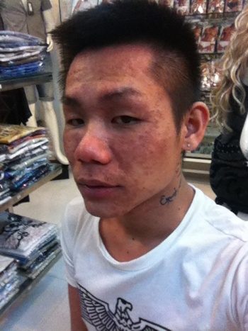 Cảm thấy hài lòng với làn da “trong mơ” nên anh Huy ngưng tiêm thuốc. Lượng khách cần làm đẹp đến với anh (người có làn da đẹp) mỗi lúc càng đông lên. Tuy nhiên, đến khoảng tháng 8/2012, anh Huy bỗng thấy cơ thể nổi mẩn đỏ gây ngứa ngáy khó chịu.