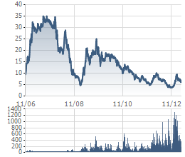 Biến động giá cổ phiếu ITA (đã điều chỉnh) từ khi lên sàn. Hiện cổ phiếu này ở mức xấp xỉ 6.000 đồng