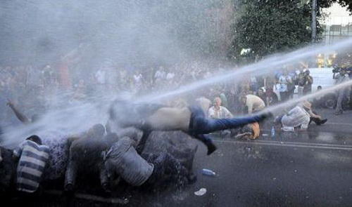 Cảnh sát dùng vòi rồng trấn áp người biểu tình quá khích