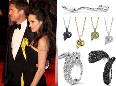 Ở lĩnh vực đồ trang sức, vợ chồng "ông bà Smith" (Brad Pitt và Angelina Jolie) cũng cho ra mắt bộ sưu tập mang tên vật bảo hộ, gồm trang sức (khuyên tai, nhẫn, vòng tay) đến những vật dụng gia đình (chén, thìa)... đều được chạm khắc hình ảnh rắn. Những sản phẩm của bộ sưu tập được làm từ các chất liệu quý như: vàng, bạc, kim cương.