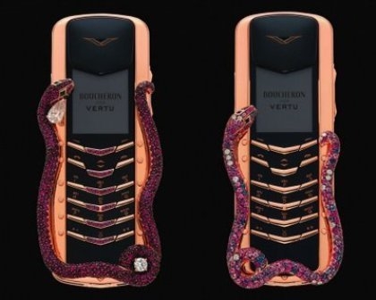 Lấy ý tưởng từ năm Rắn, các nhà sản xuất điện thoại cũng cho chi tiết hình rắn vào thiết kế của mình. Cụ thể, hãng điện thoại được đánh giá là sang trọng và đắt nhất thế giới Vertu có chiếc điện thoại Vertu Signature Cobra hình rắn hổ mang giá 310.000 USD (khoảng 6,5 tỷ đồng).
