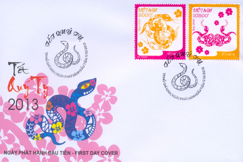 Tại Việt Nam, Bộ Thông tin và Truyền thông đã chính thức phát hành bộ tem bưu chính Tết Qúy Tỵ gồm 2 mẫu tem vuông có kích thước 37 x 37 mm, với tổng giá mặt 12.500 đồng.
