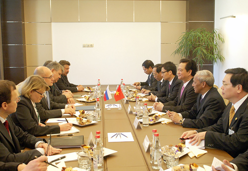 Thủ tướng Nguyễn Tấn Dũng làm việc với lãnh đạo Tập đoàn Năng lượng nguyên tử Liên bang Nga (Rosatom) - Ảnh: VGP/Nhật Bắc