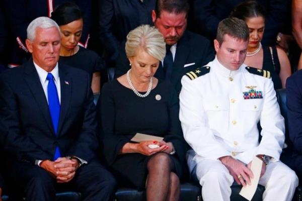Tổng thống Donald Trump không có mặt, nhưng Phó tổng thống Mike Pence cho biết nhà lãnh đạo này nhờ ông thay mặt viếng Thượng nghị sĩ McCain.