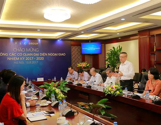 Tại buổi gặp, Phó Tổng giám đốc FLC Đặng Tất Thắng đã thông tin tới các đại sứ những dấu ấn quan trọng của FLC trong lĩnh vực bất động sản thương mại và bất động sản nghỉ dưỡng, với hơn 40 dự án trải dọc khắp 8 tỉnh thành Việt Nam được định giá khoảng 3,8 tỷ USD.
