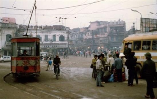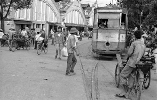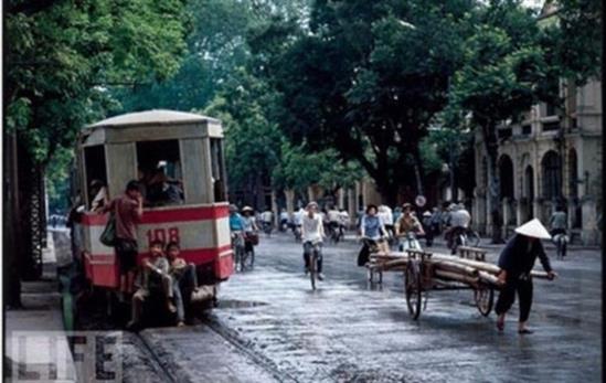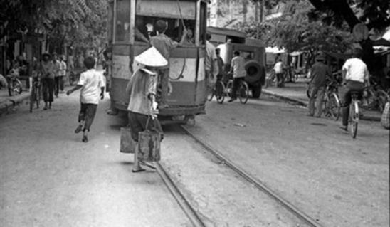 Tàu điện trên phố Hà Nội chụp năm 1972
