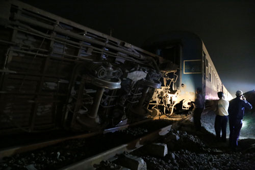 Vụ tai nạn khiến 3 toa tàu bị trật khỏi đường ray, hàng trăm hành khách hoảng loạn. Ảnh: Hoàng Táo.
